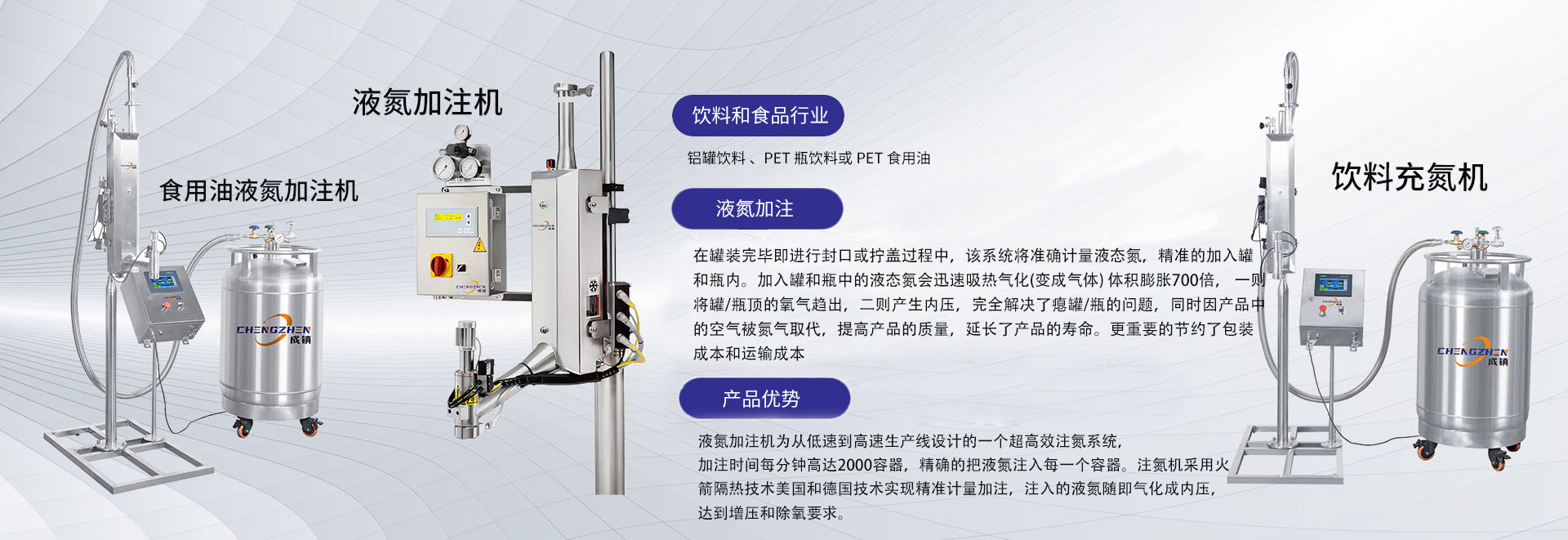液氮加注機為從低速到高速生產線設計的一個超高效注氮系統,精確的把液氮注入每一個容器。注入的液氮隨即氣化成內壓,達到增壓和除氧要求。...